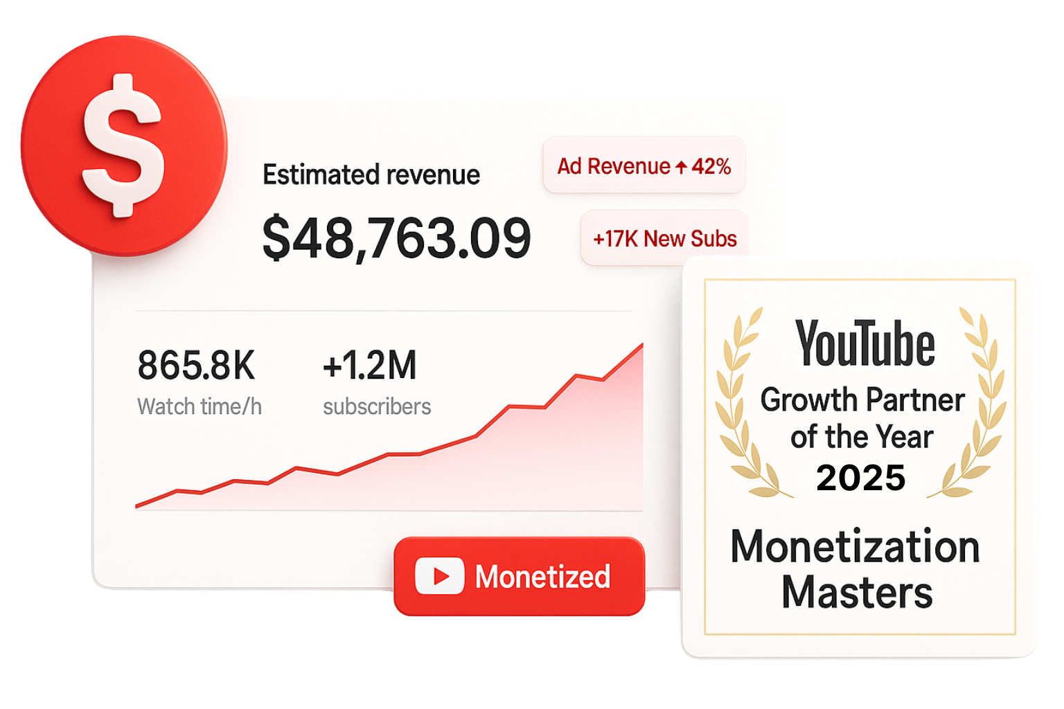 Join hundreds of creators, entrepreneurs, and investors who turned their YouTube dreams into fully monetized channels with Monetization Masters.